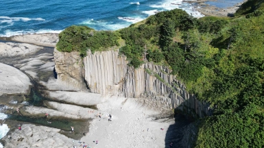 Позавтракаете и отправитесь к морскому побережью. Здесь вас ждёт удивительное место – мыс Столбчатый, настоящий символ Курильских островов. После извержения вулкана Менделеева много миллионов лет назад застывшая лава образовала пяти- и шестигранные базальтовые столбы, достигающие 50 метров в высоту, – так и появилось название мыса. Некоторым он даже напоминает музыкальный инструмент – гигантский орган.