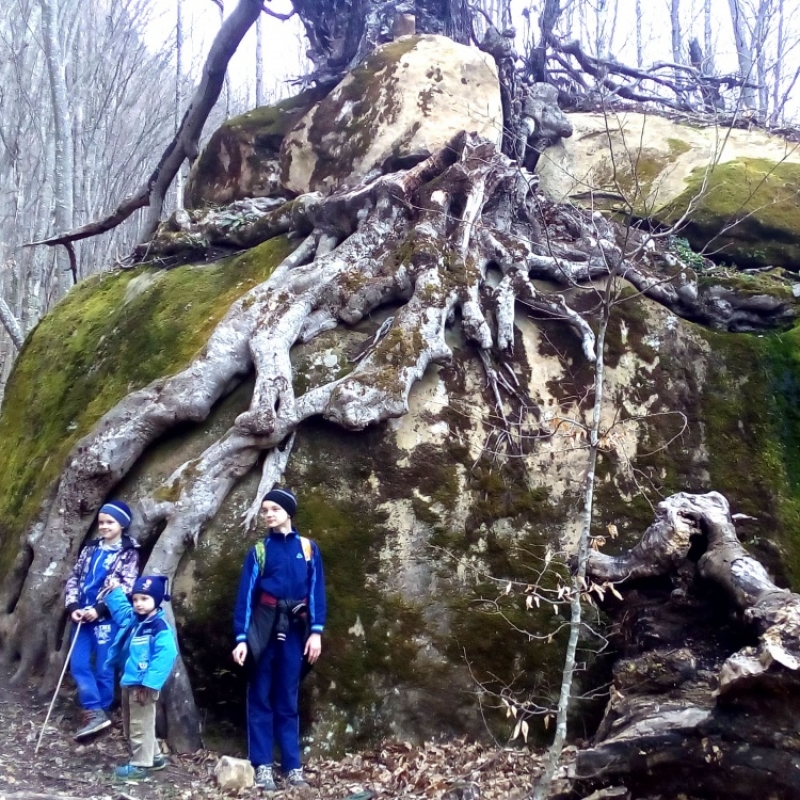 Затем наш маршрут пролегает сквозь буковый лес к скале Чёртов палец. Рядом на поляне мы устроим настоящий пикник :) Потом дойдём до диких пещер и с восторгом полазим по ним.