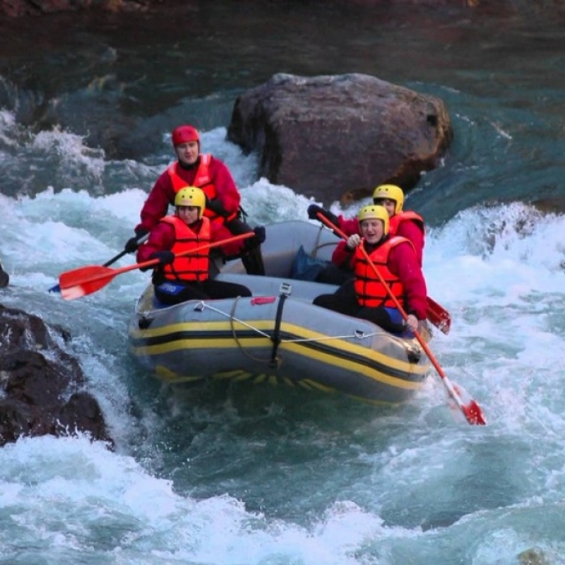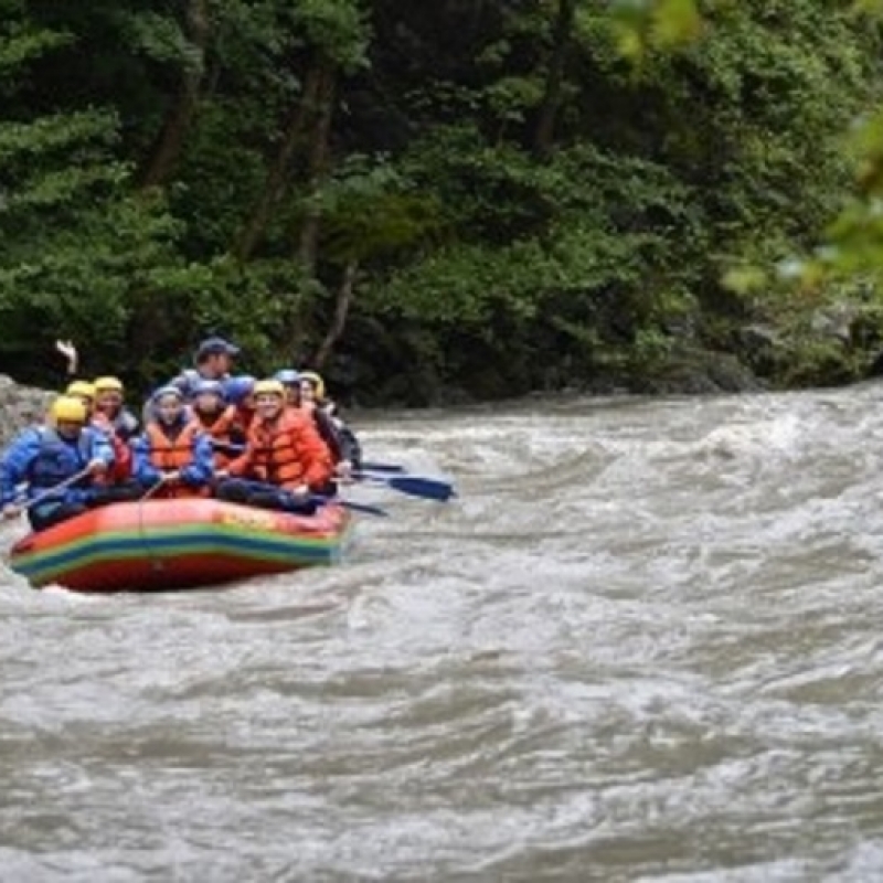 В тёплое время года в первой половине дня мы поедем на рафтинг — это весёлое и безопасное развлечение для взрослых и детей любого возраста. Есть разные трассы — как для новичков, так и для более опытных туристов. Важно: при плохой погоде (сильный дождь, ветер) или высоком уровне воды организаторы вправе отказать в рафтинге семьям с маленькими детьми!