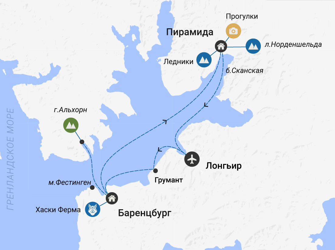 В этот день нас ждёт водная прогулка на катерах. Начнём наше путешествие из Лонгьира, самого северного населённого пункта с постоянным населением. Пересекая холодные воды Арктики, мы направимся к заброшенным шахтёрским посёлкам Грумант и Колсбей. Здесь мы узнаем о жизни исследователя Владимира Русанова и шахтёров, работавших в этих суровых условиях. Если нам повезёт с погодой, высадимся на берег и прогуляемся среди покинутых зданий.