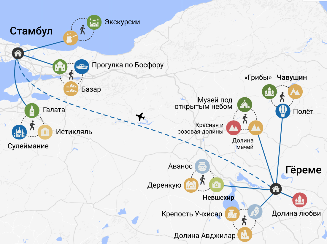 Внутренний авиаперелёт Невшехир (или Кайсери) — Стамбул оплачивается дополнительно (60-80 евро).