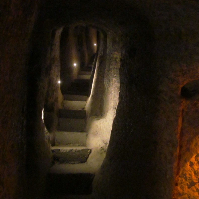 Из Гёреме поедем в город Невшехир. Недалеко от него в 1973 году был обнаружен Деринкую – крупнейший из 30 раскопанных в Турции подземных городов, на 20 тысяч жителей! На экскурсии вы узнаете, как строились и защищались такие города. Мы пройдём по нескольким этажам, уходящим вглубь земли, увидим жилые помещения и кухни, школу, церковь, вентиляционные шахты и колодцы, круглые двери-жернова.