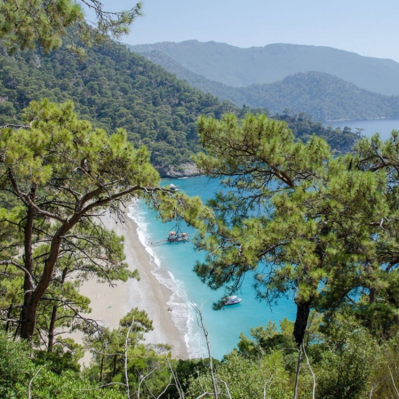А когда удовлетворим свои познавательные интересы, выйдем на тропу, ведущую к курорту Олюдениз. По прибытии заселимся и желающие отправятся купаться в голубой лагуне.