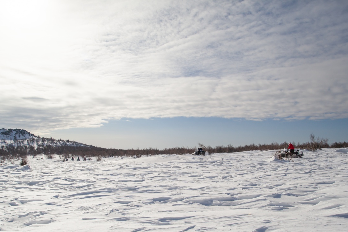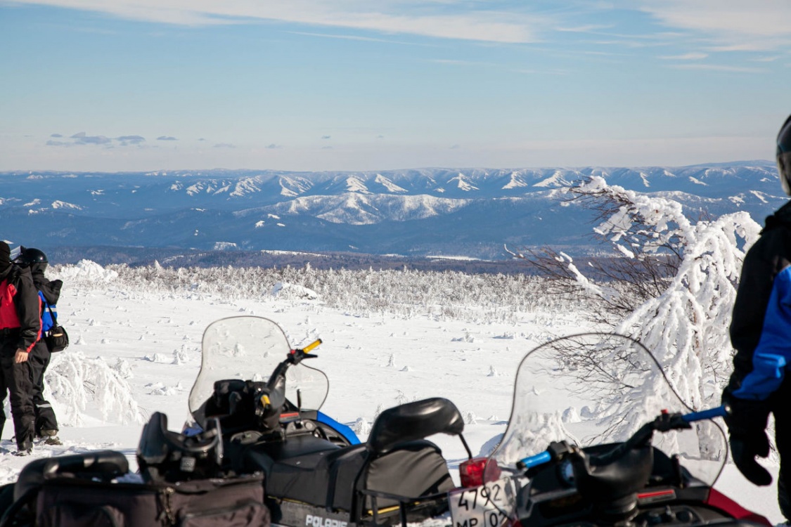 На снегоходах: 30 км.