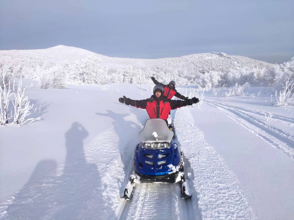 При путешествии 1 человека на снегоходе — доплата 35 000 руб.
