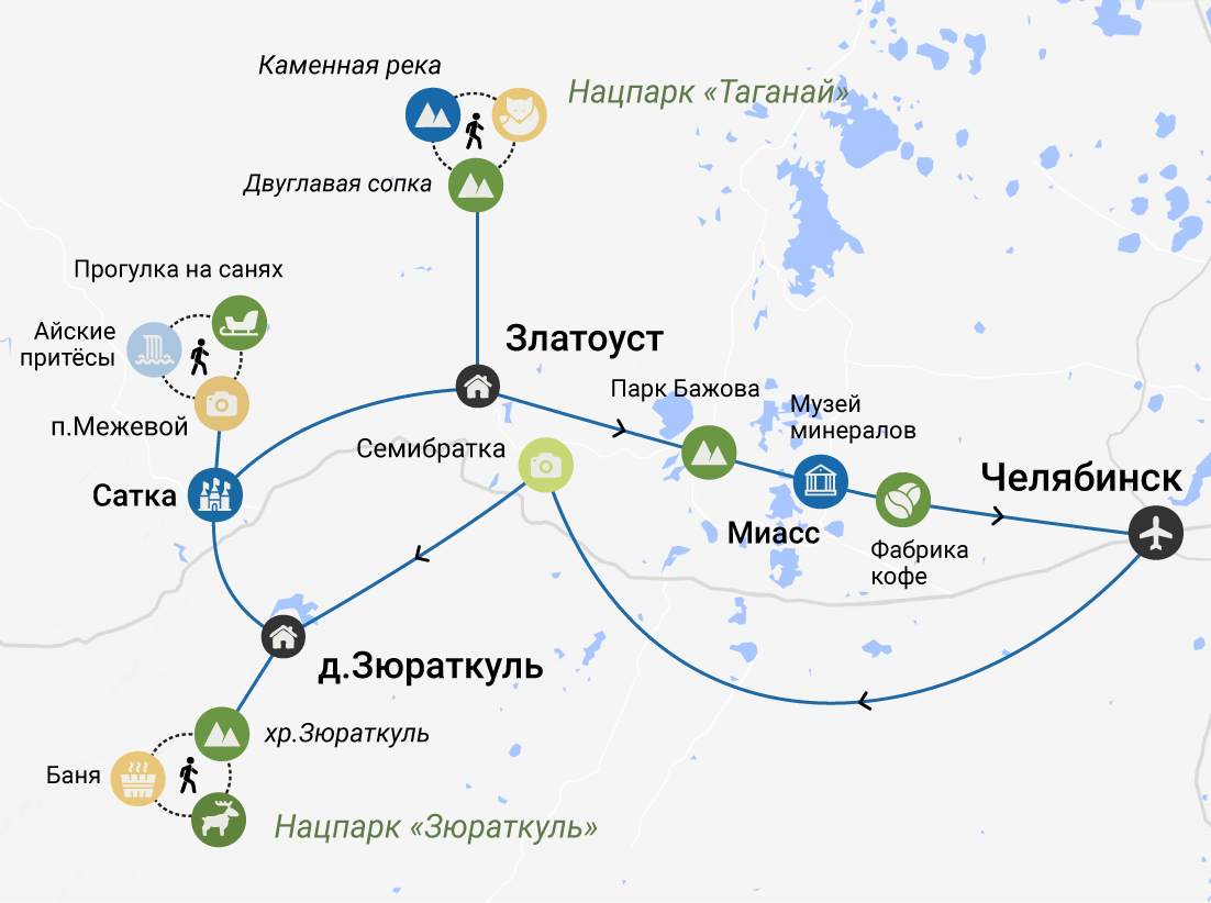 Зимой пейзажи Южного Урала напоминают декорации волшебной сказки, и мы сможем почувствовать себя её героями, отправившись в 5-дневное путешествие по самым живописным местам. Проведём эти новогодние праздники в тёплой компании Странников в окружении неповторимой уральской природы: насладимся тишиной и безмятежностью спящего зимнего леса, побываем на берегу ледяного озера Зюраткуль, прокатимся по свежему скрипучему снегу в снегоходных санях и погуляем по уральским городам, славящимся богатой историей и традициями.