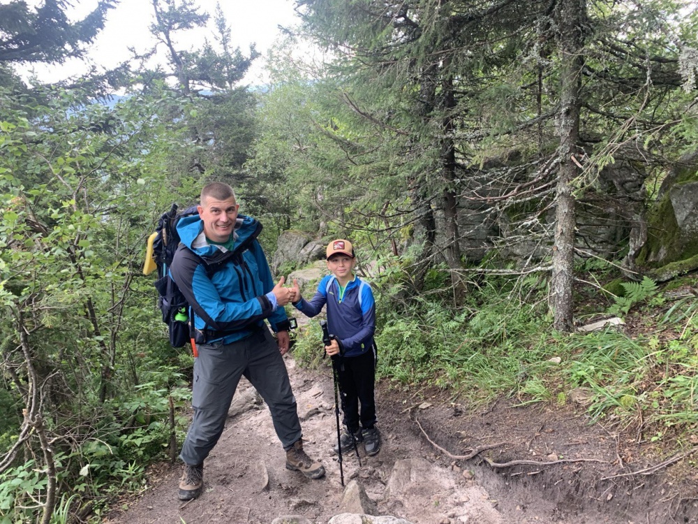 Нам предстоит пройти налегке 14 км и взойти на Двуглавую сопку. Пойдём по подготовленной тропе, а на саму вершину поднимемся по лестнице.