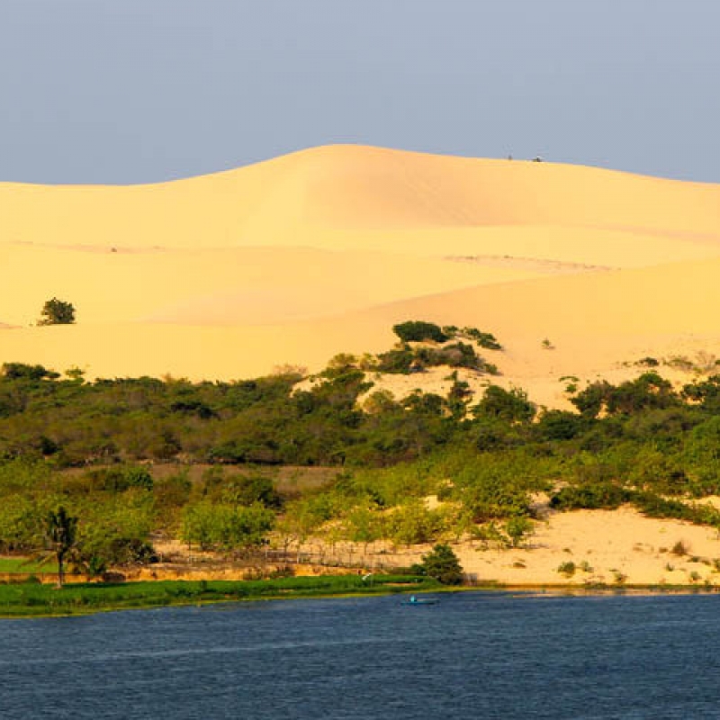 До обеда у нас пляжный отдых, а в полдень отправимся на заказном микроавтобусе любоваться удивительными творениями природы! Сначала нас ждёт прогулка к водопаду по дну каньона Феи. Затем обед с видом на рыбацкую бухту. После этого — небольшой треккинг по дюнам Белой пустыни (желающие могут арендовать джип). Можно будет наблюдать за тем, как песок из молочно-белого цвета меняется до пшеничного, янтарного и коричневого оттенков. Непередаваемые впечатления! И среди этих зыбучих дюн находится красивейшее озеро, которое сплошь покрыто цветущими лотосами круглый год.